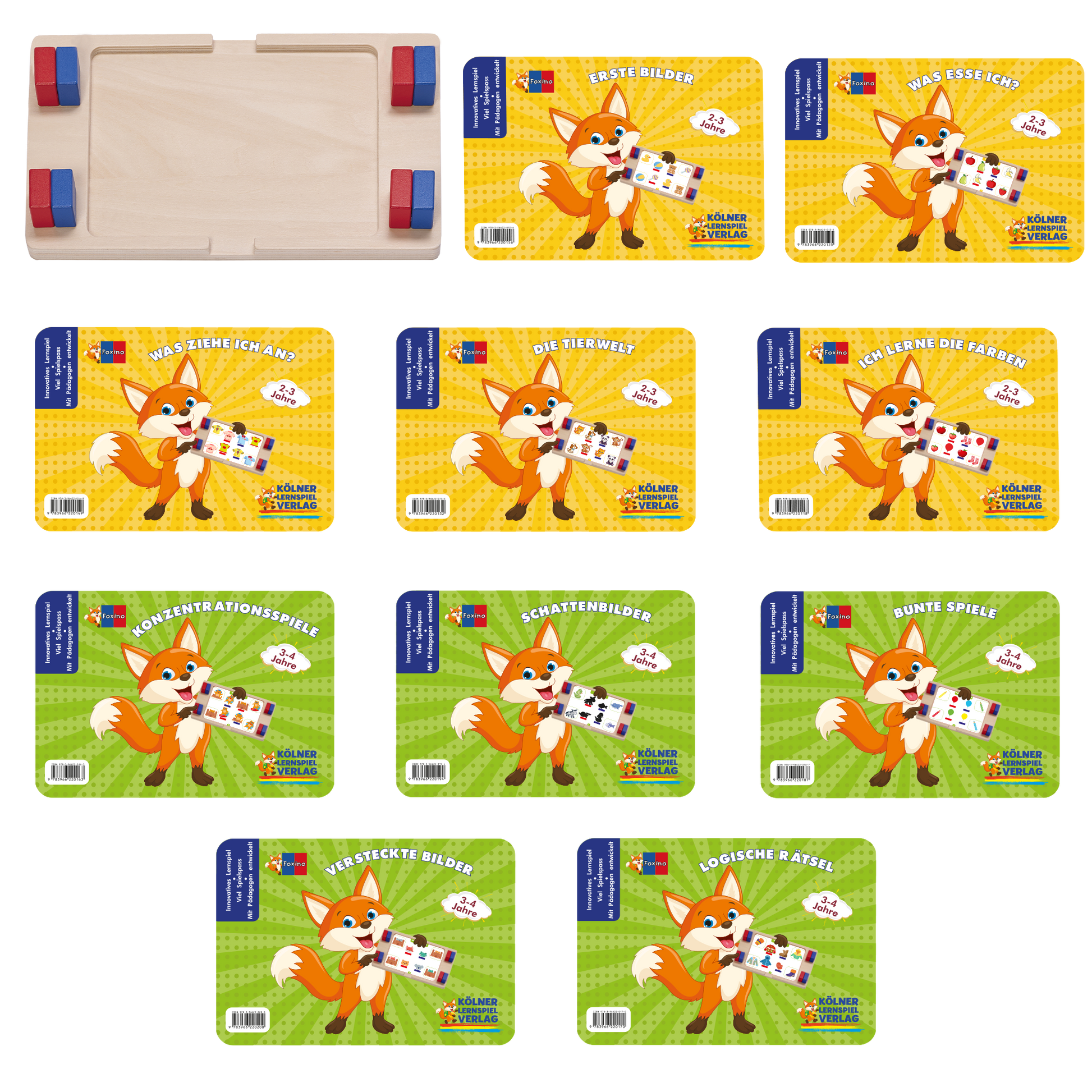 Dieses Paket beinhaltet das Foxino und 10 verschiedene Kartensätze für die Altersgruppen 2 bis 5 Jahre.