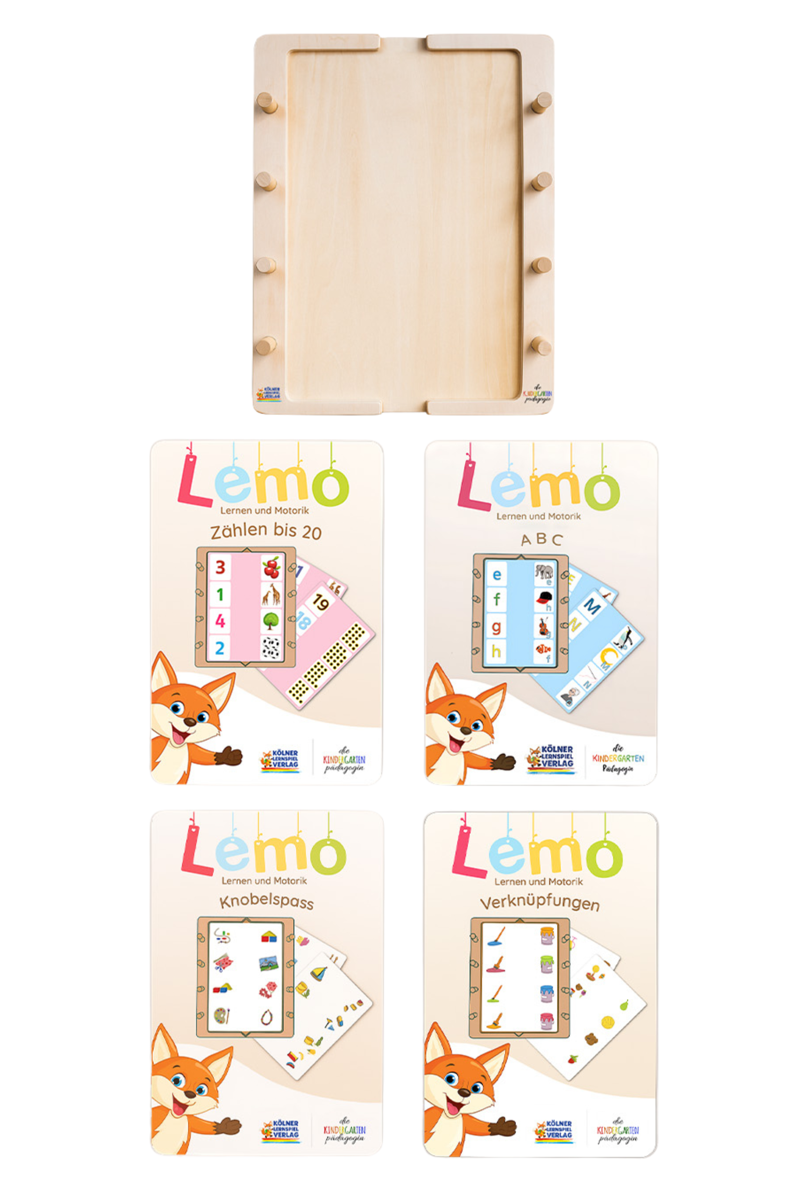5 Yaş ve üzeri için Lemo Başlangıç Seti: Ahşap Çerçeve + 4 Kart Seti