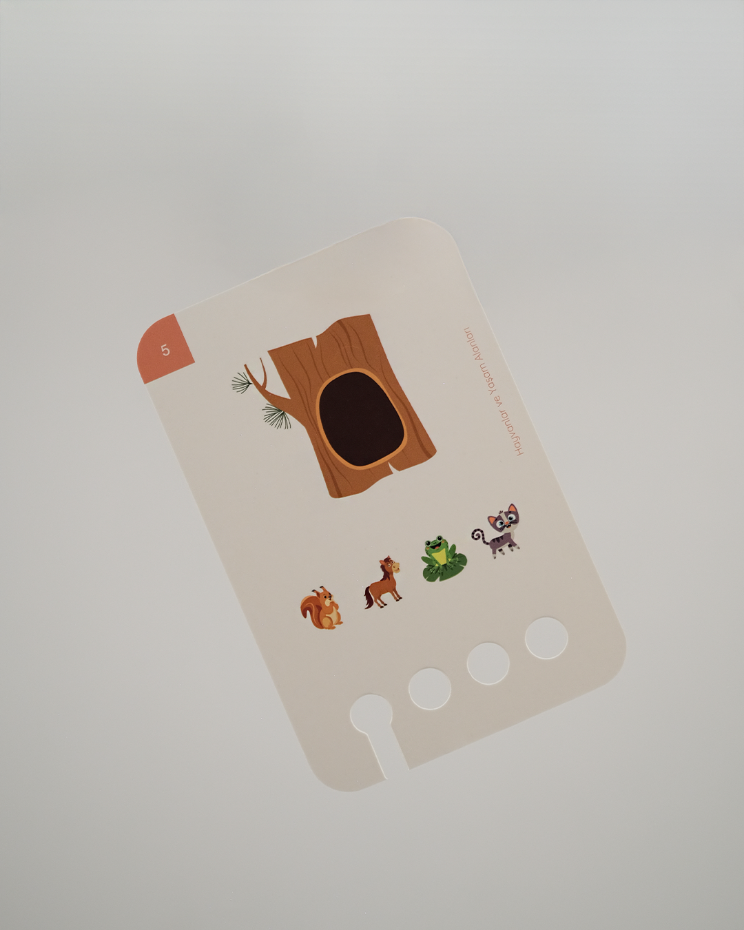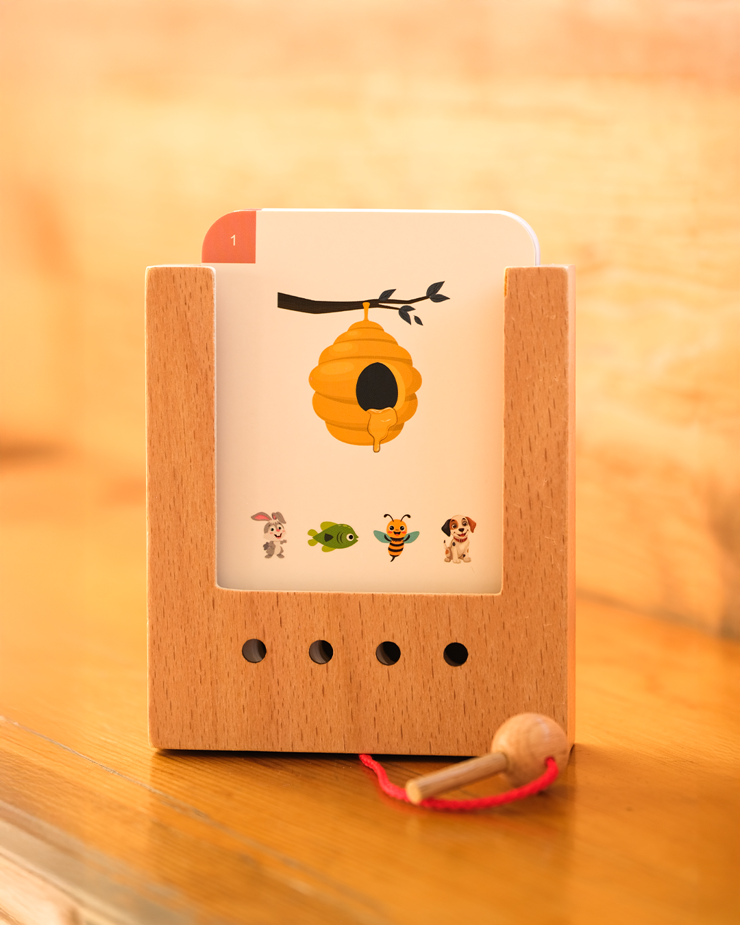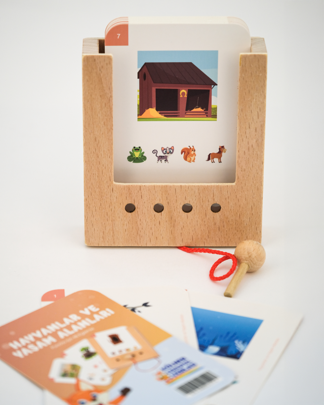 Kartlar ahşap kutuya yerleştirilir, kutuya bağlı şekilde bulunan pin ile doğru olduğu düşünülen cevap seçilir. Cevap doğru ise kart yerinden çıkar. Yanlış ise kart hareket etmez. Bu sayede çocuklar farklı cevap seçeneklerini deneyerek doğru cevabı bulur.