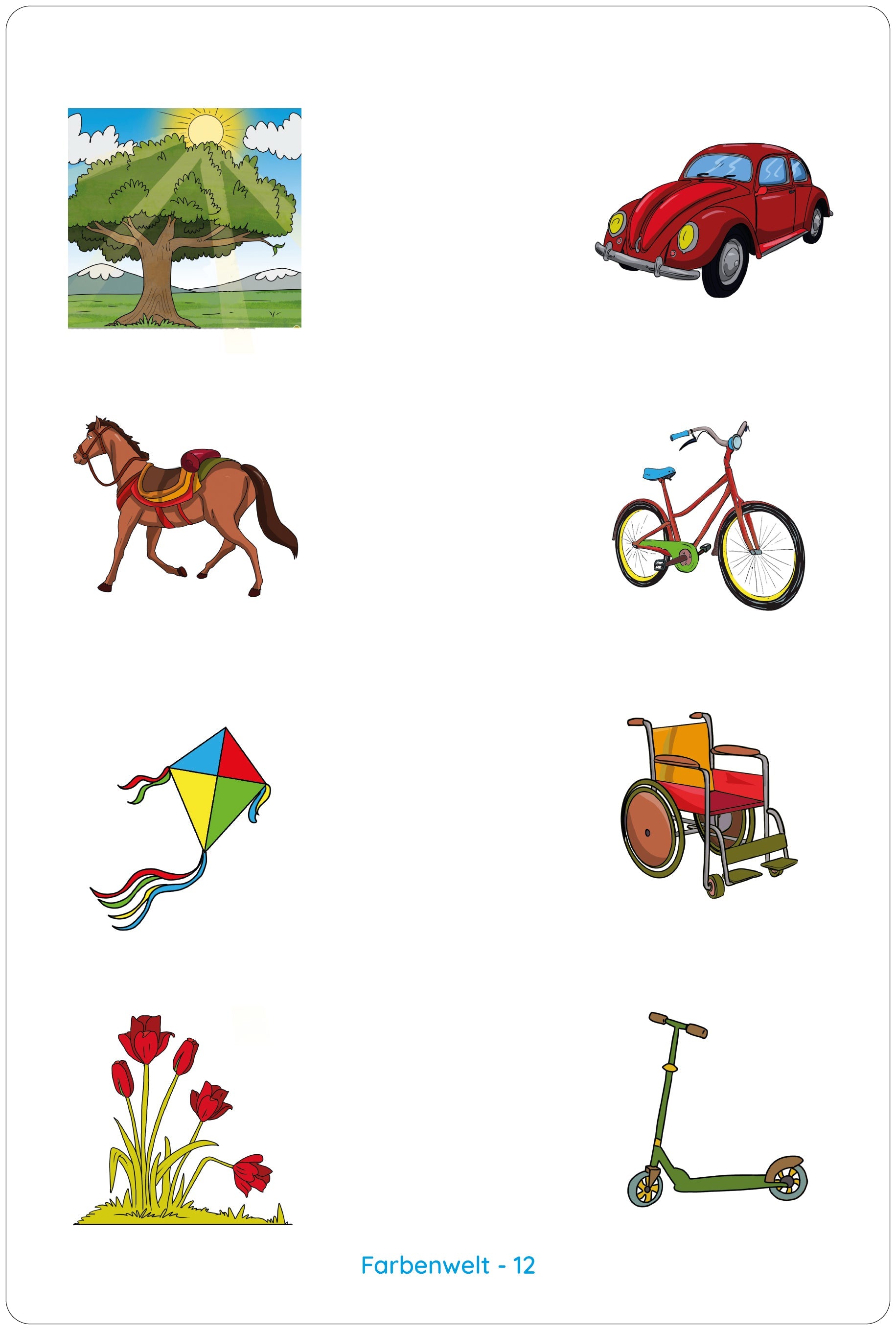 Kart setinde renklerin dünyasını anlatan 15 adet alıştırma kartı